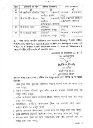 जिसमें श्रुति ठाकुर को जनसम्पर्क संचालनालय से जिला जनसम्पर्क कार्यालय रायपुर में पोस्टिंग दी गई है। वहीं नितिन शर्मा को उप महाप्रबंधक, छग संवाद (प्रतिनियुक्ति पर) अतिरिक्त प्रभार जनसम्पर्क संचालनालय का दिया गया है। लक्ष्मीकांत कोसरिया को मुंगेली से जनसम्पर्क संचालनालय रायपुर भेजा गया है।