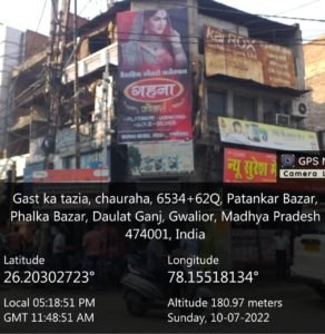 सहायक नोडल अधिकारी विज्ञापन श्री संदीप शर्मा ने जानकारी देते हुए बताया कि नगर निगम आयुक्त श्री किशोर कन्याल एवं अपर आयुक्त श्री मुकुल गुप्ता एवं उपायुक्त श्री सुनील चौहान के निर्देशन में राजस्व वसूली के लिये निरंतर अभियान चलाकर कार्यवाही की जा रही है। इसी के तहत श्री विजय प्रसाद द्वारा गश्त का ताजिया चौराहा नई सडक लश्कर ग्वालियर पर बिना अनुमति के होर्डिंग लगाकर विज्ञापन किया जा रहा है। मध्य प्रदेश आउट डोर विज्ञापन मीडिया नियम 2017 के नियम 22 के अंतर्गत अपराध कारित करने की श्रेणी में आता है।