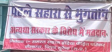 कैलारस / कैलारस के अभिकर्ता एवं निवेशकों का जमा धन सहारा कंपनी में आज भी फसे हुए है आमजन को भुगतान के लिए काफी संघर्ष करना पड़ रहा है इस भुगतान को लेने के लिए कैलारस के करीबन 7000 निवेसक एवं अभिकर्ता विगत 2 वर्षों से आंदोलन छेड़े हुए हैं जबकी अभिकर्ता एवं निवेशकों के द्वारा कैलारस थाने में तीन प्रथम सूचना रिपोर्ट सहारा कंपनी के डायरेक्टरों ,संचालकों के खिलाफ कराई जा चुकी है, केंद्रीय मंत्रियों से लेकर जिला प्रशासन तक अपनी गुहार लगाई लगाई जा चुकी है।